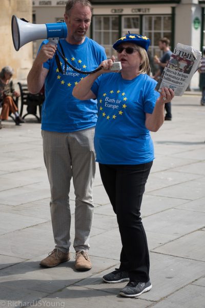 Jane Riekemann held up the front page of The Sunday Times in her speech: “’Brexit brings bonanza for billionaires’. It’s clear that the Tories are looking after their own and leaving the rest of us in the UK to sink. We must use the General Election on 8th June to vote for pro-EU candidates and unseat Bath MP Ben Howlett. He claimed to be pro-Europe but we’ve seen time and again how he has backtracked, voted to trigger Article 50 and voted against the wishes of most his constituents.”