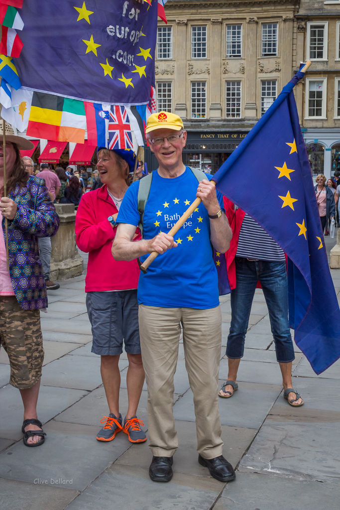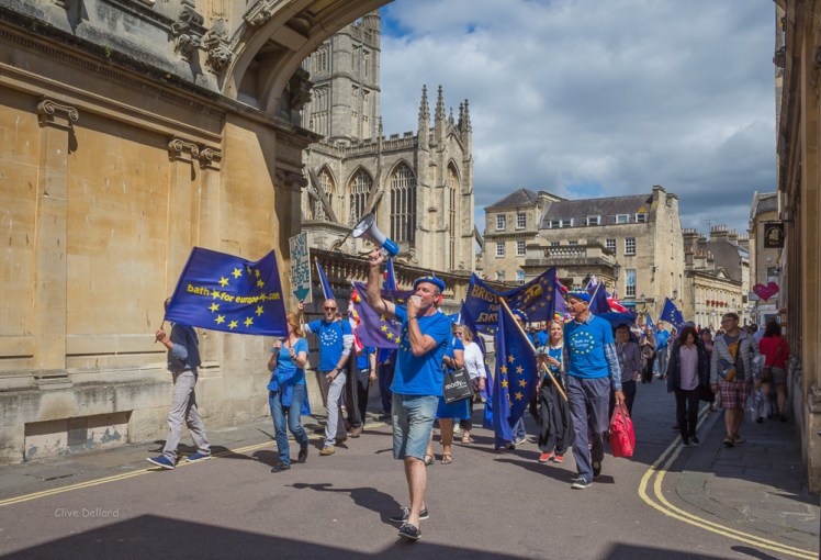 Bath for Europe hosted its monthly Pulse of Europe on Sunday, 6th August. The group convened at Abbey Churchyard, welcoming a number of new supporters, many regulars as well as our friends from our sister organisation, Bristol for Europe. Master of Ceremonies Mark Baines led the group on an upbeat march with flags and banners flying. Passionate pro-EU chants mingled with the cheerful tones of Swiss cowbells, making a big impact on the busy streets of Bath.