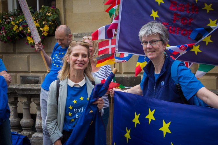 The procession led to Orange Grove for brief soapbox speeches by three Bath for Europe regulars. Olivia Leydenfrost spoke on the urgent need for all of us to join together and seize the moment to protest Brexit. William Hobhouse talked about the situation in Parliament and the status of each of the political parties, urging the group to keep fighting. Ruth Malloy gave a moving speech, sharing her thoughts on the generation of her parents who experienced war, and the precious peace that Europe has enjoyed since then. Big thanks to everyone who turned up and took part in this uplifting event. Be sure to come to our next Pulse of Europe on Sunday, 3rd September!