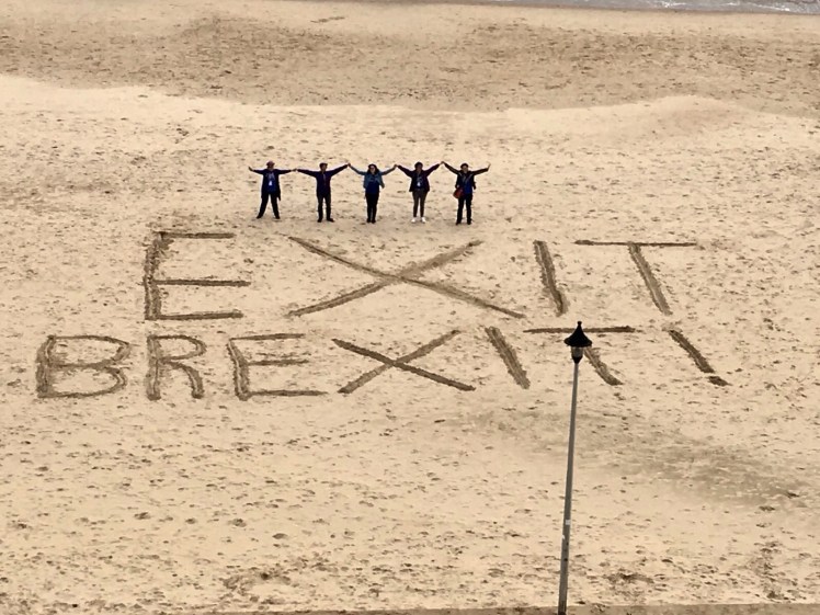A number of our members attended the Liberal Democrats’ Party Conference from 16th – 19th September wearing Bath for Europe blue berets. They made a media splash, writing a clear message in the sand outside the conference venue on Bournemouth Beach.