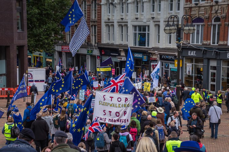 Sunday 30th September saw a large, peaceful crowd of pro-Remain protestors from all over the country and the Continent descend on Birmingham to coincide with the Tory Party autumn conference. EU in Brum organised the event in which an estimated 12,000 people took part. The event attracted coverage in The Birmingham Mail and The New European.