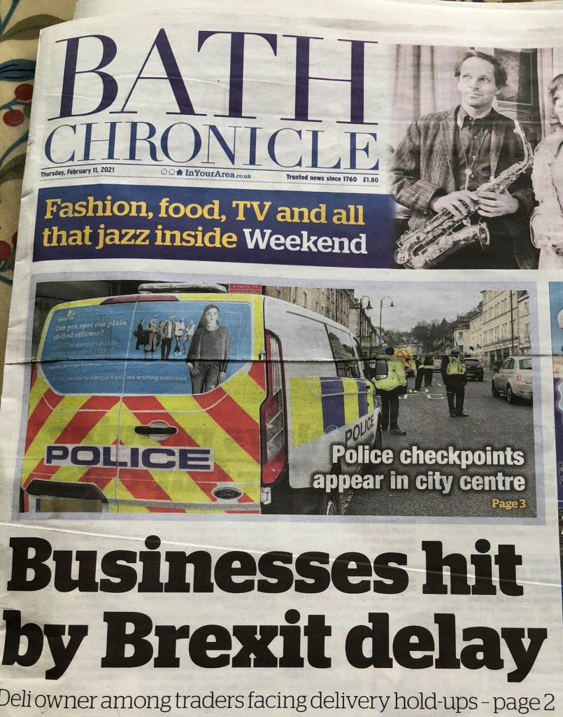 “Bath traders face ‘big worry’ over Brexit as goods take weeks to arrive. Extra forms and checks at the ports have held up deliveries and cost traders in the city money” See https://www.somersetlive.co.uk/news/local-news/bath-traders-face-big-worry-4971887
